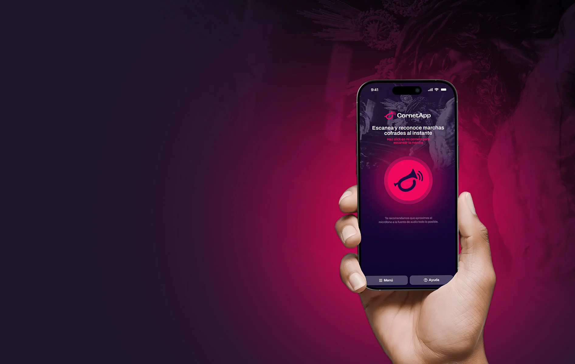 CornetApp reconoce marchas de Semana Santa al instante con solo pulsar un botón. Fácil, gratis y mágica para cofrades.
